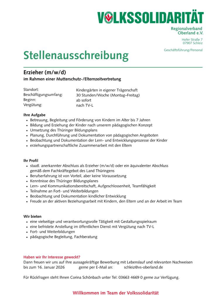 Willkommen im Team der Volkssolidarität Regionalverband Oberland e.V.