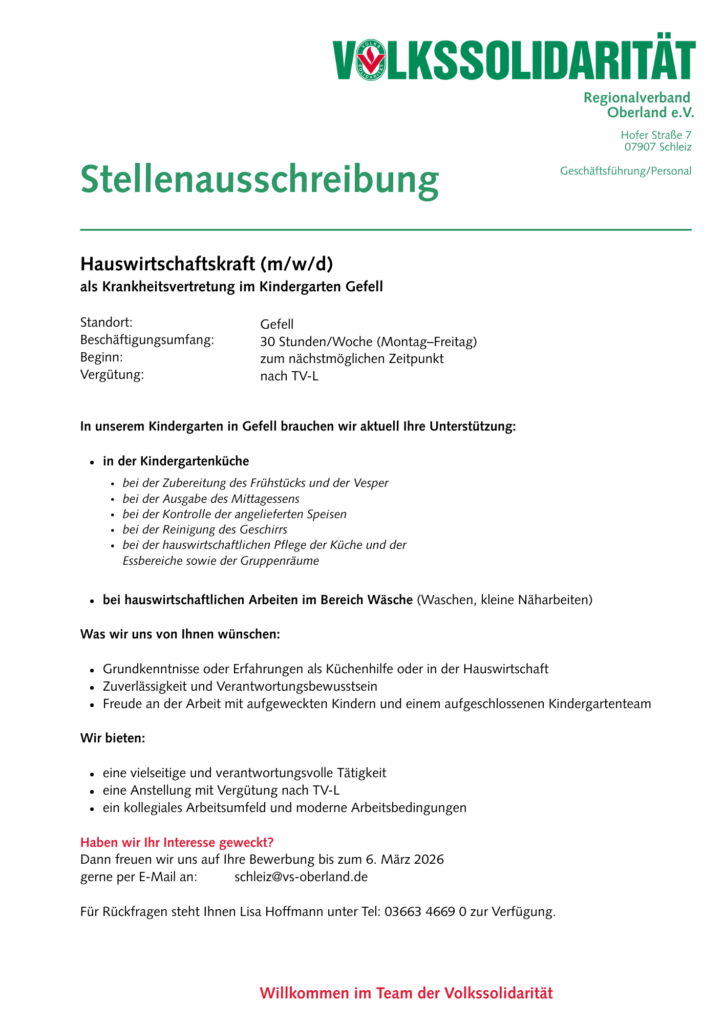 Willkommen im Team der Volkssolidarität Regionalverband Oberland e.V.