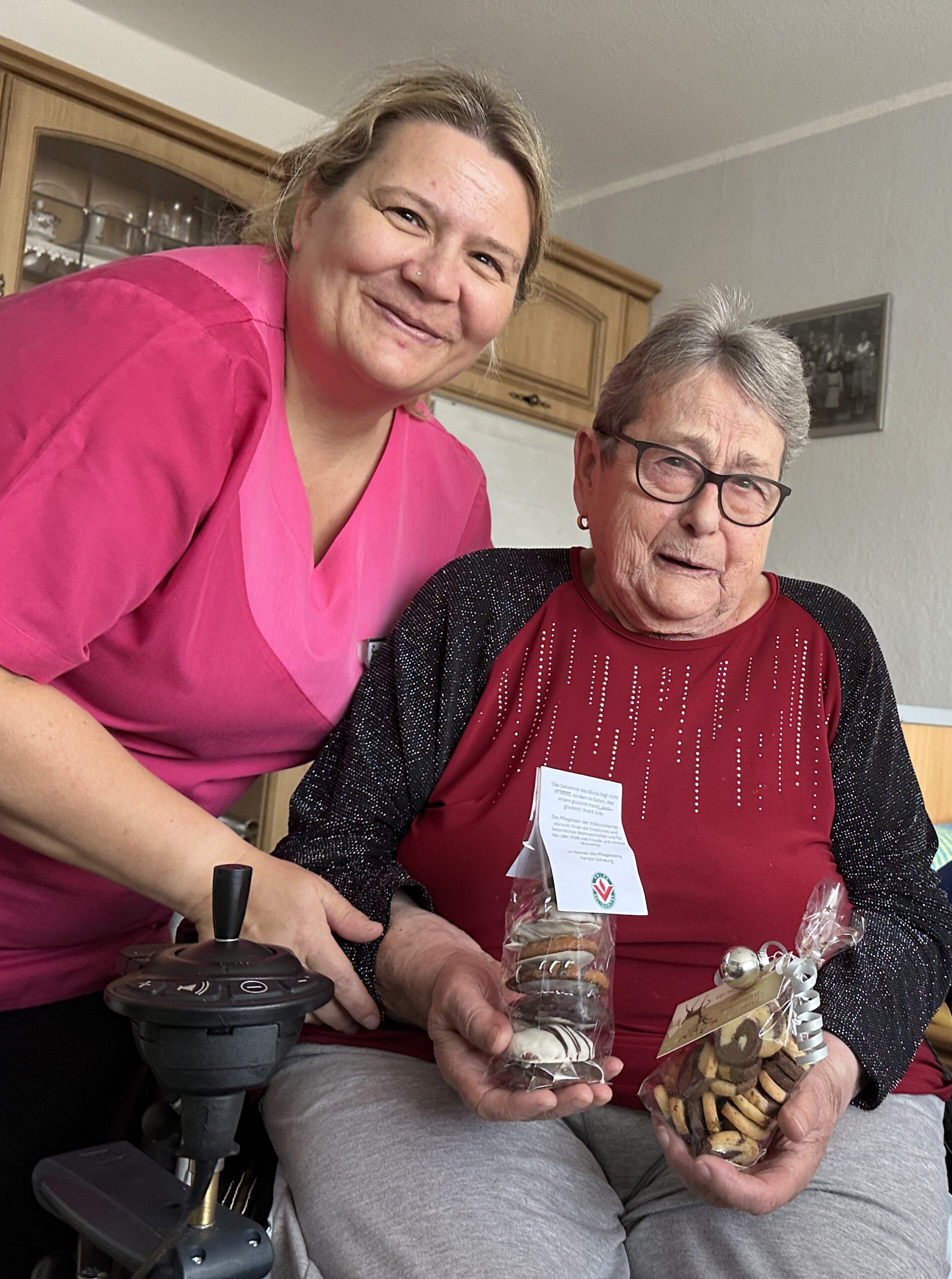 „Ich schaue keine Märchen, da weiß ich ja, wie es ausgeht“, schüttelt Doris Meister amüsiert den Kopf. „Ich mag lieber Krimis oder Sport.“ Die Seniorin zog vor drei Jahren aus Röttersdorf nach Wurzbach in eine gemütliche Wohnung am Oßlaberg. Gerade hat ihr Schwester Sandra Arnold einen süßen Weihnachtsgruß ihres Pflegeteams gebracht – Pfefferkuchen aus dem Christopherushof in Altengesees – und mit ihr abgesprochen, welche schicken Pullover mit Glitzerstreifen sie an den Weihnachtsfeiertagen anzieht. Doris Meister freut sich schon, wenn der Neffe mit den Enkeln kommt.