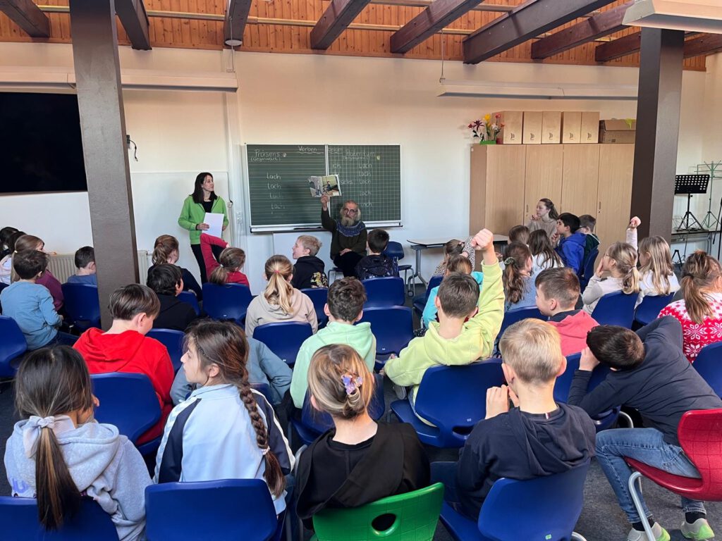 Die erste Lesung gab es mit Schleizer Schülerinnen und Schülern einer 3. Klasse mit Thomas Kretschmer, Holzbildhauer aus Tegau.